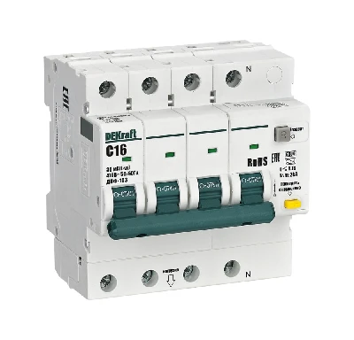Автоматические выключатели дифференциального тока серии ДИФ-103 6кА NEW Dekraft, 3P+N, номинальный ток 16 А, ном. диф. ток 30 мА, тип диф. расцепителя - AC, кривая отключения - С, Icn, Ics 6 кА, тип устройства - электронный, монтаж – на DIN-рейку. АВДТ обеспечивают три вида защиты — от короткого замыкания, перегрузки и возникновения утечки тока (в частности, вследствие прикосновения человека к токоведущим частям). АВДТ с отключающей способностью 6кА применяются во вводно-распределительных устройствах (ВРУ), главных распределительных щитах (ГРЩ), осветительных и распределительных установках в общественных, административных, производственных, промышленных и других подобных зданиях.