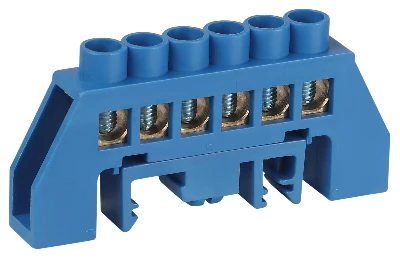 Шина NO-224-109 N ноль в комбинированном изоляторе на DIN-рейку ШНИ-8х12-6-Д-синий
