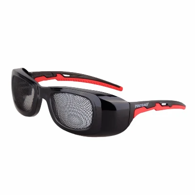 Очки защитные открытые О8 HAMMER СТАЛЬ чёрная оправа с чёрно-красными заушниками РОСОМЗ 4650194923232