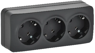 GLORY Розетка 3-местная для открытой установки с заземлением без защитных шторок 16А РС23-3-ХЧм черный матовый IEK ERH31-K02M-16