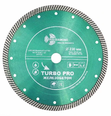 | Комплектация: | диск алмазный отрезной 230*22,23 Турбо Железобетон TP176 |