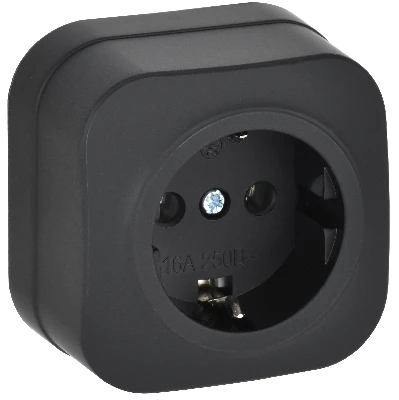 GLORY Розетка 1-местная для открытой установки с заземлением без защитных шторок 16А РС20-3-ХЧм черный матовый IEK ERH11-K02M-16