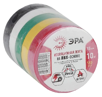 Изолента ПВХ 15мм*10м 5шт = 5 цветов (5/500/16000)только упаковками по 5 штук ЭРА C0038781
